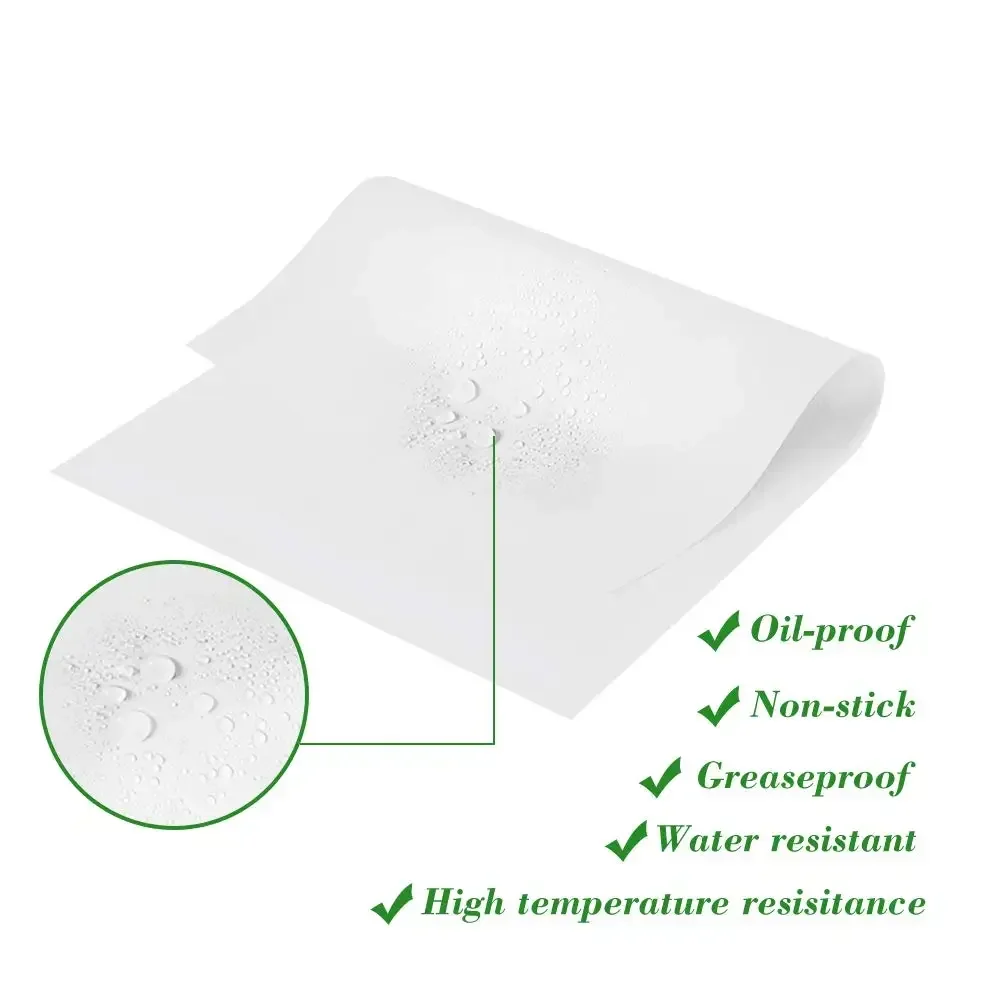 NON-STICK & EASY TO CLEAN: Do you love baking but hate cleaning up? This nonstick value pack parchment paper sheet makes it possible and even works great! Food can be easily slide off from the baking tray and you just need to remove the baking paper and throw it away after baking. Even wet dough won't stick to it.