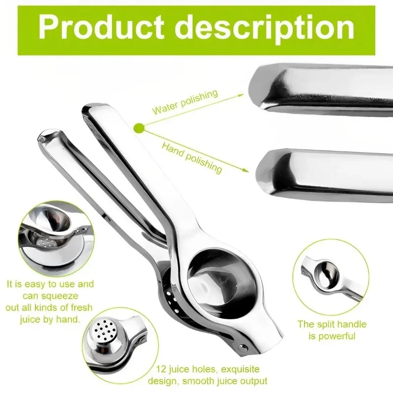 Enjoy fresh citrus flavor whenever you need it with this durable stainless steel manual lemon squeezer. Designed for effortless squeezing, it extracts every last drop from lemons, limes, and small oranges without seeds or pulp slipping through. The ergonomic press design offers a comfortable grip, making it ideal for daily use in cooking, cocktails, or refreshing drinks.